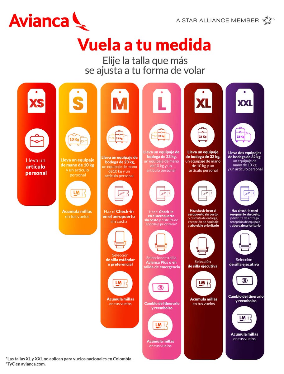 Foto - Avianca exhibe sus tarifas como etiquetas de tallas de ropa | Noticias de turismo REPORTUR, Equipaje - Avianca, Avianca Escucha on Twitter: \, AVIANCA | Nueva forma de volar | Vuela a tu medida : Centro Ayuda Atrápalo Colombia, Panamá, Costa Rica y Guatemala, Equipaje - Avianca, AVIANCA | Nueva forma de volar | Vuela a tu medida : Centro Ayuda Atrápalo Colombia, Panamá, Costa Rica y Guatemala, Nuestros beneficios | Avianca Airlines, Cleto Reyes México - Peso corporal y onzas: Guía rápida para saber qué talla de guantes eres. | Facebook, AVIANCA - eDestinos.com, AVIANCA | Nueva forma de volar | Vuela a tu medida : Centro Ayuda Atrápalo Colombia, Panamá, Costa Rica y Guatemala, Cuál es el peso y las dimensiones permitidas para el equipaje de bodega o facturado? – Centro de ayuda, ✈ Avianca | AV-AVA | Page 2181 | SkyscraperCity Forum, Política de equipaje - Información de viaje |Avianca Colombia, Tips de Viaje | Avianca Airlines, Avianca: equipaje permitido y check in en 2021 - YouTube, Dónde puedo comprar más equipaje en bodega y cuánto cuesta? – Centro de ayuda.